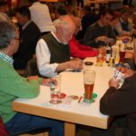 „Oid und jung miteinander“: 64 Spieler trafen sich zu 16 Schafkopfpartien im Wildenwarter Pfarrheim, darunter auffallend viele junge Spieler, die hier ihre ersten Turniererfahrungen sammelten. So saßen häufig drei Generationen an einem Tisch und spielten einträchtig miteinander über alle Altersgrenzen hinweg. Mit Altbürgermeisterin Marianne Steindlmüller aus Frasdorf und Altbürgermeister Klaus Daiber aus Bernau versuchten gleich zwei ehemalige Kommunalpolitiker ihre freie Zeit zu füllen; beide erreichten gute Plätze. Elf Damen hielten die Frauenquote dieses Mal konstant. Alle Schafkopffreunde erfüllten damit das Vermächtnis von Pfarrer Josef Preis, der bei der Einweihung des Wildenwarter Pfarrheims alt und jung beim gemeinsamen Spiel im Pfarrheim zusammenführen wollte, als er dieses Turnier vor über einem Vierteljahrhundert ins Leben rief.