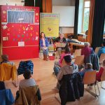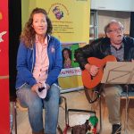 Zunächst spielten und sangen Max Breu und Kathy Puchalla die bekanntesten Kinderlieder. Bei „Alle meine Entchen“ oder „Summ, summ summ“ waren sogar die Erwachsenen textsicher. Natürlich durfte auch der Kasperl-Klassiker „Tri Tra Trallala“ nicht fehlen.