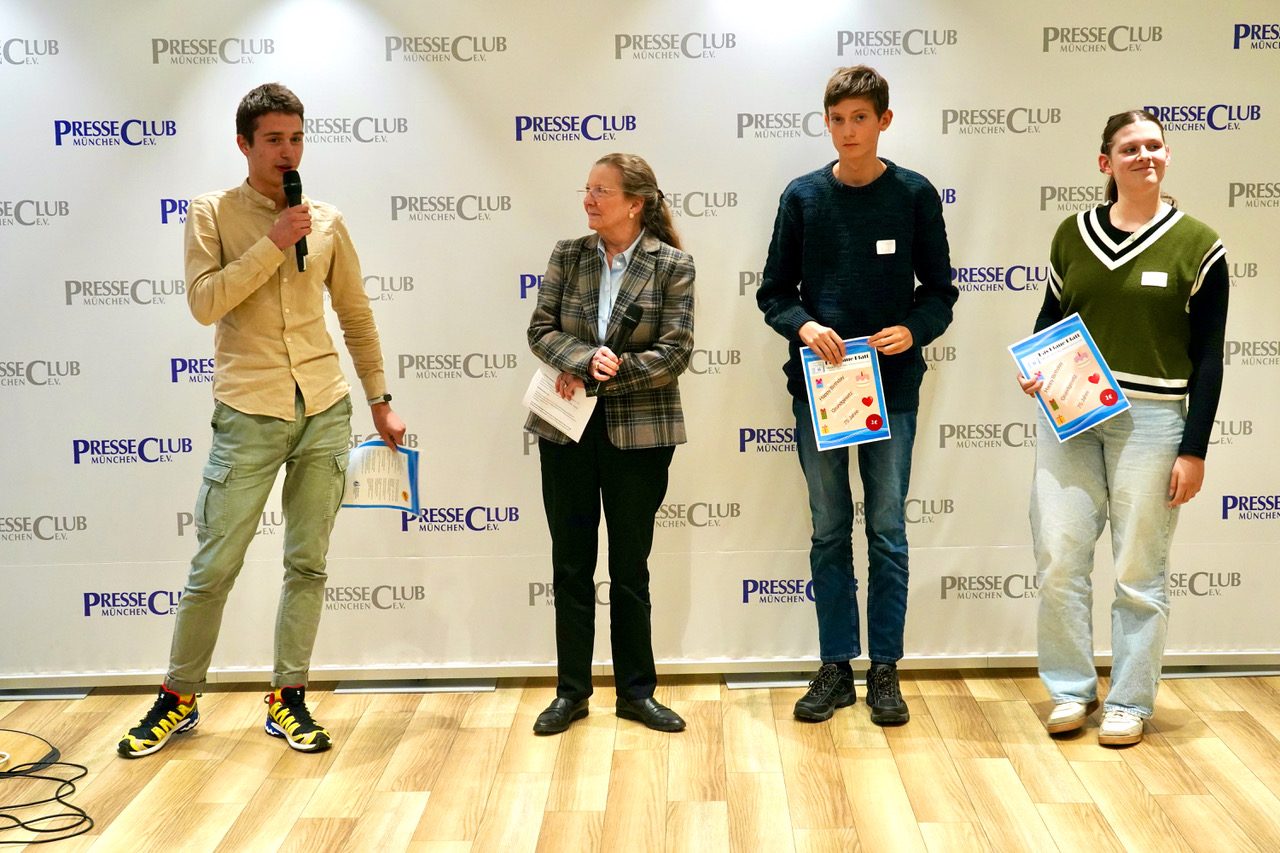 Schülerinnen und Schüler des Bodensee-Gymnasiums Lindau widmeten ihre Projektzeitung „Das Blaue Blatt“ dem Thema „75 Jahre Grundgesetz“ mit Beiträgen zur Demokratie, dem Frauenwahlrecht und der Weimarer Verfassung.