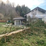 Der nächtliche Föhnsturm hat zuweilen auch für einige Schäden in den heimischen Wäldern gesorgt – wie diese Bilder vom Waldweg  in Prien-Prutdorf zeigen, fiel diese Fichte in den Garten eines Wohnhauses ohne allerdings nennenswerten Schaden angerichtet zu haben.