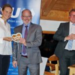 Bevor Landtagsabgeordneter und CSU-Kreisvorsitzender Klaus Stöttner die Wahlen durchführte, erklärte Annette Resch, warum Prien mehr kann. Zu ihren Themen nannte das „Priener Kind“ mit Abitur im Ludwig-Thoma-Gymnasium einige Beispiele. Dazu gehörten unter anderem: Mehr Transparenz und Kommunikation, mehr Schnelligkeit bei verschiedenen Projekten (z. B. Bahnhofs-Vorplatz oder Prutdorf-Umgehung), mehr Verkehrsentlastung, mehr Parkraum mit Parkhäusern am Bahnhof, an der Beilhackstraße und mit einem Parkleit-System, mehr für Radfahrer (z. B. einem Rad-Schnell-Weg vom Zentrum zum Chiemsee), mehr für das IST-mobil in der Region Chiemsee (für dessen Zustimmung sich Annette Resch als Jugendreferentin einsetzte), mehr Verständnis für die Landwirtschaft („Denen brauchen wir nicht täglich die Arbeit erklären“) und mehr Interesse für Tourismus und Wirtschaft („Gute Arbeitsplätze sind wichtig“). Mit einer Vision überraschte die Bürgermeister-Kandidatin als sie sagte: „Mir schwebt vor, ein Haus der Vereine zu schaffen, kulturell und sozial, gerade für die Musikschule brauchen wir räumliche Verbesserungen, Ideen und Konzepte wären schon vorhanden“ – so Annette Resch in ihrem Bemühen, Prien jeden Tag ein Stück besser zu machen. Um dies auch umzusetzen bekam sie an diesem Abend von Christian Simon ein persönliches Ideen-Buch, in dem sich in den nächsten Monaten Bürger, Firmen, Vereine, Organisationen und weitere Gesprächspartner mit Notizen wieder finden werden.