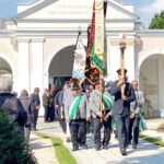 Foto: hö – Priener Ortsvereine mit ihren Fahnenabordnungen bei der Trauerfeier für Franz Pfliegl