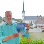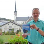 Foto/s: Hötzelsperger – Michael Leberle mit seinem Buch und mit Blick von seiner Wohnung auf die Priener Pfarrkirche „Maria Himmelfahrt“.