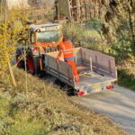 Fotos: Hötzelsperger – Unsere Bilder zeigen Bauhofmitarbeiter beim Einholen der Schneestangen im Prutdorfer Waldweg