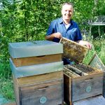 Bei einem Vorort-Treffen erläuterte der Facharbeiter der Bienenwirtschaft und Imker-Meister in Ausbildung (an der LFS in Warth NÖ nahe Wiener Neustadt) die aktuelle Bienen- und Honigernte-Situation. „Nachdem es im Vorjahr zu trocken war, war es heuer im Frühjahr und im Mai zu kalt, deshalb ist keine gute Honig-Ernte zu erwarten. Im übrigen wird in Österreich der Honigbedarf zu 80 Prozent von der eigenen Erzeugung gedeckt, in Deutschland sind es nur ca.20 Prozent Eigenhonig, der Rest wird importiert“. Bis zur Sommersonnwende nimmt der Fleiß der Bienen zu, in einem Volk sind rund 30.000 bis 50.000 Bienen am Arbeiten, da kommt bei sonnigem Wetter auch gut Honig in die Waben. Dazu gibt der Imker noch einen Tipp: „In der Zeit kurz vor der Sommersonnenwende sehen die sammelnden Bienen in jeder Person, die zu nahekommt, einen Angreifer, denn es könnte ein Honigdieb/Bär sein“. Sollte dies der Fall sein und der „Angreifer“ wird gestochen, so rät der Imker, die Stichwunde mit einem zerkauten Spitzwegerich einzureiben, dann ist der Schmerz und die Schwellung gleich gelindert.
