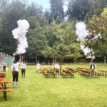 Der Vereinstrio mit den Vorsitzenden Peter Steiger (Fischereiverein), Florian Wunderle (Schützengesellschaft) und Helge Luesebrink nahmen zum Auftakt miteinander die Begrüßung der Gäste vor. Ihr erster Dank galt dem Kur- und Tourismusverein sowie dem Ersten Bürgermeister Andreas Friedrich, der sich mit vielen weiteren Ehrengästen aus den Reihen des Priener Gemeinderates und der Ortsvereine von Prien und Umgebung am schönen und lauen Sommerabend im Kurpark erfreute. Große Freuden herrschten besonders bei den vielen Kleinen, denn die drei Veranstaltervereine machten ihr Waldfest im Kurpark zu einem richtigen Familienfest. So übernahmen die Vereinsmitglieder ehrenamtlich die Bewirtung und den Service mit Unterstützung der Landmetzgerei Mayer aus Bad Endorf und des Hofbräuhauses aus Traunstein. Die Fischer mit ihrer Jugendabteilung boten ein Zielwerfen und Test-Angeln nahe dem Steckerlfisch-Grillplatz an, der Tennis-Club bereitete ein Dosenschießen vor, an einem weiteren Platz gab es Gaudi beim Preisangeln mit nachhaltigen Kunststoffenten und die Böllerschützen der Königlich Privilegierten Feuerschützengesellschaft eröffneten das Fest lautstark mit einem dreifachen Salutschießen. Alsdann übernahmen die Sulzberg-Musikanten die Aufgabe, für Musik und Stimmung zu sorgen, was ihnen bestens gelang zumal sich im Laufe des Abends immer mehr Priener und Gäste einfanden. Letztlich ging das Familien-Fest-Motto „Miteinander und Füreinander“ bestens auf. Diesem Motto wurde und wird es auch gerecht, dass die rund 60 ehrenamtlichen Helfer aus den drei Vereinen die Erlöse des Waldfestes den Aufgaben der jeweiligen Vereinsjugendabteilungen zukommen lassen. Unisono erklärten sie auch noch, dass das Priener Kurpark-, Wald- und Familienfest zu einer festen Einrichtung im Priener Sommer werden soll.