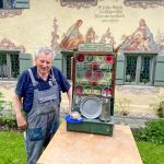 Glasermeister Sepp Stöttner erinnert mit Kraxe an frühere Zeiten