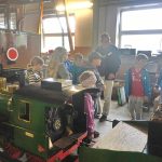 Groß war die Wissbegierde zu den im Programmheft angekündigten Fragen wie „Gibt es auf dem Chiemsee auch Eisbrecherschiffe?“, „Wie lange ist die Werft?“, „Warum wird der See immer kleiner?“ oder „Warum wird Ludwig II auch Märchenkönig genannt?“ Die perfekten Antworten zum Hafen und allem was dazugehört erfuhren die Kinder durch den Hafenmeister Günther Hartl, der die 15 Kinder auch gleich mit zur Werft begleitete. Aufregend war es dann für die interessierte Schar und auch für die beiden Betreuerinnen als der Hafenmeister unter anderem erklärte, dass die Schiffswerkstatt extra und exakt so groß gebaut wurde, damit das größte Schiff der Familie Feßler auf den Zentimeter genau darin Platz hat. Auf die Frage wie viele PS denn die Motorwinde wohl hat, die die schweren Schiffe auf Rollen in die Werft zieht, staunten alle nicht schlecht, dass es nur 16 Pferdestärken sind. Weiter ging es zum Lokschuppen der Chiemseebahn, vorbei an einem großen Haufen Kohle, den in dieser Menge manches Kind noch nie vorher gesehen hatte. In der Halle stand dann ein Waggon dieses historischen Zuges, der noch die ursprüngliche Farbe braun hatte und alle erfuhren, dass dies die Original-Farbe der Bockerlbahn war als diese vor nun 134 Jahren gebaut wurde.