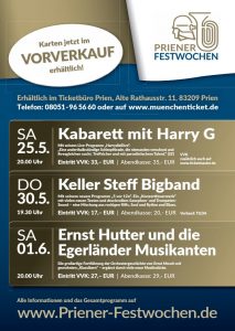 Im Rahmen der Priener Festwochen 2019 mit Jubiläums-Veranstaltungen für die Feuerwehr und für die Blaskapelle gibt es zu folgenden Veranstaltungen ab sofort einen Vorverkauf: