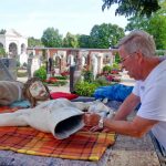 Das Malerhandwerk hat Paul Panzer in Prien im Betrieb des gestrengen Lehrmeisters Sepp Schleicher erlernt. 45 Jahre war dann Panzer als Praktiker und Fachmann im Prüfungsausschuss der Maler-Innung Rosenheim. 30 Jahre lang war er zudem und ebenfalls in Rosenheim als Lehrer in Wintermonaten für die überbetriebliche Unterweisung von jungen Lehrlingen in verschiedenen Techniken im Einsatz. Dies und das sich Selbst-Erlernen von weiteren handwerklichen Fähigkeiten mit Farben, Holz und weiteren Materialien haben ihm viel Freude bereitet. „Als Gebirgsschütze hatten und haben wir sowieso die Aufgabe, uns um die Heimat und um den Erhalt von Kulturgütern zu kümmern, da lag es nahe, mich noch intensiver um die Restaurations-Kultur zu kümmern“ – so Paul Panzer in seinem Rückblick in seiner Wohnung, die zuweilen zu einer Werkstätte umfunktioniert wird. Der ersten Herrgott-Restaurierung folgten schon bald weitere Figuren, unter anderem die Heilige Maria, die oft am Fuße vom Gekreuzigten angebracht ist. Zum Anfang seiner Aktivitäten gehörten unter anderem in guter Abstimmung mit den Gebirgsschützen von Bad Endorf und Prien die Christusfigur einer kleinen Kapelle in Thalkirchen bei Bad Endorf sowie in Prien der Heilige Nepomuk. Der Heilige Nepomuk gilt als Brückenheiliger und Patron des Beichtgeheimnisses und er hat in Prien an der Brücke zum Ortsteil Gries und am Kreisel bei der Pension Lindenhof gleich zweimal eine Heimat gefunden. Feld- und Friedhofskreuze wurden in Wildenwart, St. Salvator, Rimsting und Prien restauriert, aber auch über den Chiemgau hinaus ließ Paul Panzer seine Bereitschaft und seine Leidenschaft nicht los. Im tirolerischen Stubaital, das für ihn nach vielen Urlaubsaufenthalten inzwischen zur zweiten Heimat geworden ist, sprach es sich ebenfalls herum, dass Paul Panzer Haus- und Feldkreuze nicht nur von Staub, sondern auch von groben Zeitschäden befreit. Über Kontakte durch die Gebirgsschützen-Mitglieder und oft durch das Hörensagen der Privatleute und Bauern, bei denen Paul Panzer tätig war, kam es zu immer wieder neuen Anfragen. „Von Anfang an und bis heute mache ich diese Tätigkeiten ehrenamtlich, natürlich bin ich froh, wenn sich ein Auftraggeber, die Kirche oder die Gemeinde bereit erklärt, die Kosten für das Material zu übernehmen, aber ich selbst mache es für Gottes Lohn“, so der Ehren-Oberleutnant der Priener Gebirgsschützen.