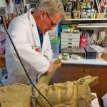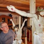 Der heute 77jährige Paul Panzer ist als Maler schon einige Jahre in Ruhestand, dies gilt aber nicht für seine Aktivitäten zum Erhalt heimatlicher und sakraler Kulturgüter. Eine umfassende Arbeit war in den letzten Jahren in Abstimmung mit der örtlichen Kirchenverwaltung das Herrichten des großen Herrgotts in der Kapelle am Priener Marktplatz, rund 100 Arbeitsstunden steckte da Paul Panzer hinein. Weitere Projekte, die es in vielerlei Arbeitsschritten und mit verschiedenen Materialien zu meistern galt, waren in Prien der Auferstehungs-Christus in der Taufkapelle neben der Pfarrkirche, das mächtige Feldkreuz in Gschwendt oberhalb von Bernau oder die Friedenskapelle auf der Kampenwand nahe der Steinlingalm, wiederum ein Projekt das mit der örtlichen Gebirgsschützen-Kompanie von Aschau abgestimmt war. Mehrmals schon wurde in der Priener Bahnhofsstraße von Paul Panzer der „Beton-Oma“ im wahrsten Sinne unter die Arme gegriffen, einmal nachdem sie von Randalierern schwer verletzt war und einmal nach winterlichen Beschädigungen. Der unweit von der „Beton-Oma“ sitzende „Beton-Opa“ soll heuer ins Visier von Paul Panzer genommen werden. Eine weitere Anfrage kam vor einigen Monaten aus den Mitgliederreihen der Sektion Prien vom Deutschen Alpenverein, dazu hieß es: „Ein hölzener Herrgott unterhalb der Priener Hütte am Geigelstein bedarf unbedingt einer Kur“. Paul Panzer sagte auch hier zu, die meiste Arbeit ist inzwischen gemacht, so dass der fertige Corpus Christi im Frühjahr, wenn der meiste Schnee weg ist, wieder an seine alte Stelle kommen wird.