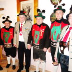 Foto: Hötzelsperger – 1. Besuch aus Südtirol von der Schützenkompanie Obermais in Meran – von links: Zahlmeister Thomas Filberth, Fahnenleutnant Gerhard Höllrich, Ehren-Hauptmann Rudi Holthausen, Oberleutnant Christian Plattner, Fähnrich Christian Frei und neuer Hauptmann Sepp Kirner. 2. Besuch aus Südtirol – Hinten von links: Thomas Filberth, Gerhard Höllrich, Rudi Holthausen, Christian Plattner und Christian Frei, vorne von links: Kompanieschreiber Walter Vogl, Hauptmann Sepp Kirner und neuer Oberleutnant Bernd Fischbacher.