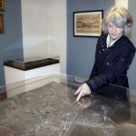 Bildunterschrift: Im ersten Stock des Priener Heimatmuseums zeigt Judith Schmidbauer auf ein Ortsmodell von 1895. Hier kann man noch die ebenerdige gefährliche Überquerung der Bahnstrecke München – Salzburg erkennen, aus deren Erdreich 14 Jahre später die künstlich aufgeschüttete Landzunge entstand.