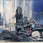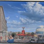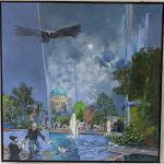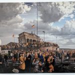 Die Motive sind ausgesprochen vielfältig. Wie mir die gerade anwesende Kuratorin der Priener „KunstZeit“ Ingrid Fricke erklärte, spiegeln die Berlin Bilder die aufregende Geschichte der Stadt wieder – so wird z.B. auch in verkleinerter Form ein Hauptwerk von Matthias Koeppel „Die Öffnung der Berliner Mauer“ gezeigt, dessen Original im Casino des Abgeordnetenhauses im Preußischen Landtag hängt. Die Kultur- und Kunsthistorikerin wies mich auch auf interessante Details in Matthias Koeppels Bildern hin, wie z.B. darin verborgene Prominente wie die Ex-Bundeskanzler Gerhard Schröder und Helmut Kohl, Ex-Berlin-Bürgermeister Klaus Wowereit, oder der frühere Fraktionsvorsitzende der Linksfraktion Gregor Gysi und versteckte Cola-Dosen als eine Art persönliches Kennzeichen.