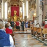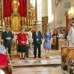 Im Rahmen eines Gottesdienstes in der Pfarrkirche „Maria Himmelfahrt“ in Prien wurden -von links- Gunther Kraus, Edda Eder, Fritz Seipel, Martina Rappel und (dienstlich abwesend) Elias Dreikorn aus ihrem bisherigen ehrenamtlichen Dienst im Team des Pfarrgemeinderates verabschiedet. Dabei dankten Pfarrer Klaus Hofstetter und Gemeindeleiter Werner Hoffmann mit Gottes Segen und mit Handschlag sowie mit Blumen und einer Dankurkunde.