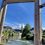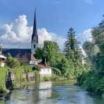 Prien wie gemalen und zum Teil auch gleich mit Rahmen – so kann man das Herz der Marktgemeinde mit der Pfarrkirche “Maria Himmelfahrt” vom Ufer des Flusses Prien betrachten, wenn man sich auf einem Platz zwischen dem Priener Friedhof und dem Priener Ortsteil Am Gries befindet. Der Blick durch den am Wegrand angebrachten Rahmen erinnert unter anderem daran, dass Prien und der Chiemsee gerne aufgesuchte Plätze für Maler und Künstler waren und sind.