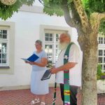 Prien radelt heuer zum dritten Male mit beim bundesweiten Wettbewerb „Stadtradeln“. Der Startschuss beim Haus des Gastes für die Kampagne des Klima-Bündnisses erfolgte in guter Priener Ökumenischer Verbundenheit. Karl-Friedrich Wackerbarth von der Evangelischen Christuskirche und Gundula Ganter als Delegierte der Katholischen Kirche bei der Arbeitsgemeinschaft Christlicher Kirchen Chiemsee spendeten den Auftakt-Radlern Gottes Segen, auf dass in den nächsten drei Aktions-Wochen alles gut fährt und läuft.