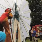 Foto: Prien Marketing GmbH – Verkleidet als fantastische Hochstelzenfiguren begeisterten die beiden Straßenkünstler Emmeran Herringer und Stefan Pillokat 2019 das Priener Publikum.