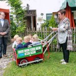 Auch Priens Erster Bürgermeister Andreas Friedrich hat sich ein Bild vor Ort gemacht und die Anschaffung des Diedersdorfer Krippenwagens mit Motor und sechs Sitzen unterstützt. „Eigentlich wollte ich schon vor längerer Zeit die wichtige Tagesmutter-Einrichtung besuchen, doch durch Corona blieben wir bislang zurückhaltend, den neuen Ausflugswagen unterstütze ich gerne“ – so der Bürgermeister bei seinem Besuch anlässlich des heurigen Sommer- und Gartenfestes, zu dem Angelika Westner auch die Eltern ihrer betreuten Kinder einlud. Die Tagesmutter zeigte sich erfreut über die Zustimmung aus dem Priener Rathaus und sagte: „Alles, was wir hier tun dient dem Wohl der Kinder und so wird der neue Wagen auch in deren Sinne eingesetzt“. Möglich sind nunmehr auch weitere Touren, bislang war das Eichental die Haupt-Ausflugsstrecke, dazu sagte die von ihren Kindern liebevoll gerufene „Oma“: „Jetzt aber können wir zum See, auf die Inseln sowie mit der Chiemgau-Bahn nach Aschau und darüber hinaus planen und damit haben wir einen größeren Radius und mehr Abwechslung“. Wichtig ist Angelika Westner ein guter Kontakt zu den Nachbarn und natürlich zu den Eltern, deswegen organisiert sie zusammen mit ihrem Mann Alex nicht nur die sommerlichen Gartenfeste, sondern auch ein Osterfest oder ein Nikolausfest.