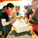 Fotos: Irmi Furtner – Fleißige Priener Trachtenfrauen beim Eintrittszeichen-Basteln für den Festabend