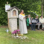 Die heurige Maiandacht wurde bei geringem Regen am Bildstöckl St. Urban unter freiem Himmel gefeiert. Das Bildstöckl entstand ebenfalls 1985 mit Unterstützung des Priener Kunstmalers Konrad Huber und es soll nicht nur zur Verschönerung des Platzes sondern auch dem Schutz der gesamten Anlage dienen. Die Maiandacht wurde mit Gebeten, Musik und Gesang gestaltet von Gemeindereferentin Conny Gaiser vom Pfarrverband Westliches Chiemseeufer, von Harmonika-Spielerin Michaela Leidel sowie vom Frauensingkreis Hittenkirchen. „Wollen wir die innige Verbindung der Mutter Gottes mit ihrem Sohn Jesus Christus als Vorbild für unsere eigenen Verbindungen zum Himmel und untereinander nehmen“ – so Conny Gaiser bei der Weinberg-Andacht.