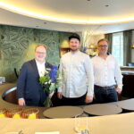 Bericht: Marktgemeinde Prien a. Chiemsee – In der Marktgemeinde Prien am Chiemsee ist man stolz auf seine beiden Restaurants, die kürzlich von dem Gourmetführer „Guide Michelin“ ausgezeichnet wurden. Die „Foodbar Wachter“ konntet ihren Michelin-Stern erfolgreich verteidigen: (v.l.n.r.) Der Erste Bürgermeister der Marktgemeinde Andreas Friedrich und der Fachbereichsleiter für Tourismus, Kultur und Wirtschaftsförderung Tobi Huber bedanken sich bei dem Priener Sternekoch Dominik Wachter (im Bild mittig) für das herausragende Engagement und die bemerkenswerte Kochkunst.