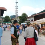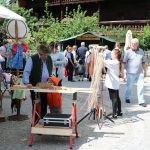 Holz ist auch im Plastikzeitalter noch vielfach der Ursprung aller Dinge im Oberen Priental – beinahe wenigstens. Egal ob aus einem Baumstamm mit Beitel und Stemmeisen ein lebensechter Auerhahn zurechtgeschnitzt wird oder mit dem Schnitzmesser zu Edelweissblüten oder ob aus Spänen ein Korb oder eine Schwinge geflochten wird. Bei allen Arbeiten konnten die Marktbesuchter beim 18. „grenzenlosen“ Sachranger Bauern- und Kunsthandwerker Markt zuschauen. Aber es gab noch viel mehr zu sehen, über 80 Standlleute zeigten ihre Waren und vor allem auch ihr Können unmittelbar am Stand, vom Holzschnitzer über die Töpferin bis zum Hirschhornknopfmacher. Es gab wieder viel zu sehen und Neues zu erfahren auf dem Sachranger Bauern- und Kunsthandwerker Markt und nicht immer waren die Antworten ganz leicht zu geben. Wie wird Porzellan bemalt? Wie heiß ist ein Schmiedefeuer und wie heiß ist das Feuer des Glasbläsers? Wie viele Zähne hat ein Rechen und aus wie vielen Holzarten wird ein Rechen gemacht? Wie funktioniert ein Spinnrad? Welches Material braucht ein Korbmacher und was ist eine Schwinge? Weil all diese Handwerker auf dem Markt da waren und man ihnen in ihrem Standl bei ihrer Arbeit zuschauen konnte, waren alle Fragen zu beantworten. Die Standlleute hatten viel Zeit und auch wenn es eigentlich pressiert hätte, gaben sie noch geduldig Auskunft. Der Markt dauert zwei Tage und so verteilten sich die Fragen auch auf zwei Tage. Der Andrang beim Standl mit dem Schmalzgebackenen der Sachranger Frauen war wieder groß, auch das frischgebackene Bauernbrot aus dem Backofen neben dem alten Schulhaus fand schnell seine Abnehmer. Auch das ist heutzutage etwas Besonderes und nur ganz kurze Zeit hier auf dem Markt zu haben. Also muss man sich ranhalten beim Probieren und Verkosten. Brotzeit machen können die Besucher überall auf dem Markt – überall gibt es etwas zu schauen und auch zu probieren.