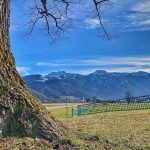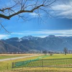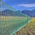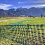 Kilometerweise steht er meist neben den Straßen und es wird ihm wenig Beachtung geschenkt, der Schneezaun. Schon im Herbst wird der Schneezaun in der ganzen Region aufgebaut um gerüstet zu sein, wenn die weiße Pracht Einzug hält. Doch in diesem Jahr ist er noch nicht groß zum Einsatz gekommen und schlummert so fest verankert regelrecht im Winterschlaf. Seit vielen Jahrzehnten hat sich das grüne Geflecht als ein wirkungsvolles Mittel behauptet, um Schneeverwehungen zu reduzieren. Doch schaut man den Schneezaun wie hier bei Aschau i.Chiemgau gerade jetzt bei der frühlingshaften Stimmung mal bewusst an, so könnte man diesen auch direkt als Kunstwerk in der Landschaft wahrnehmen.