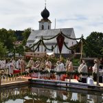 Der erste Bürgermeister der Gemeinde schloss an seine Worte des Empfanges am Dorfbrunnen vom Samstag an. „Heute ist ein besonderer Tag, ich freue mich, festlich mit der Traumkulisse feiern zu können. Die Heimatgemeinde Seeon-Seebruck zollt allergrößten Respekt“. Besonders gefallen hat ihm der Altar mit dem Übergang vom Ufer auf das Schwimmfloß: „Die Brückendarstellung steht für besondere Werte“.