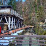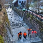 Rund 60.000 Euro sind kalkuliert für eine Maßnahme in Ruhpolding: Im Ortsteil Haßlberg, direkt entlang der historischen Glockenschmiede, fließt der Thoraubach, ein verbauter Wildbach. Die Ursprünge der Glockenschmiede samt Wasserrad gehen zurück bis ins 17. Jahrhundert, das Ensemble steht unter Denkmalschutz. In den 1950er-Jahren hatten Arbeiter der Wasserwirtschaft die Mauern zuletzt saniert. Jetzt drohten sie einzustürzen. Hochwasser hatte sie massiv unterspült. Auch die Sicherung am Grund des Baches war in Mitleidenschaft gezogen. Bis zu vier Arbeiter der Traunsteiner Flussmeisterstelle stehen im Bachbett, das Wasser wird während der Bauzeit über zwei große Rohre abgepumpt und umgelenkt. Die Männer sorgen dafür, dass die Löcher in den porösen Mauern mit Beton gefüllt und fehlende Steine im Mauerwerk ersetzt werden. Und sie reparieren die Sohlschwellen aus behauenen Quaderbausteinen. Eine schwere, herausfordernde Aufgabe für die Wasserbauer, die seit zwei Monaten bei Wind und Wetter draußen arbeiten. Bis Weihnachten wollen sie die Sanierung des Thoraubachs auf einer Länge von etwa 150 Metern abgeschlossen haben.