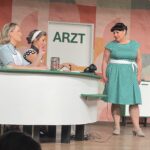 Bereits lange bevor sich der Bühnenvorhang öffnete und bevor Benedikta Hannibal als Erste Vorständin der Theatergemeinschaft zahlreiche Ehrengäste und Förderer willkommen heißen konnte, wurden die Besucher im Dorfstadel bewirtet und auf das kommende Geschehen eingestimmt. Eine großzügige und auch mit einem mobilen Skelett ausgestattete Bühnen-Arztpraxis bot Raum für viele Stamm- und Erstgäste. Deren Anliegen landeten in erster Linie beim Sprechstundenhilfe-Duo Hilde Hurtig (Martina Strobl) und Arzt-Tochter Traudl (Stephanie Schauer), der Tochter des anfangs ganz und gar unfreundlichen Dr. Hubertus (Werner Strobl). Um die Launen des Arztes zu verbessern, kamen die Bürodamen auf die Idee, an eine längst vergangene Affäre ihres vermeintlich untreuen Chefs in Venedig zu erinnern. Ganz und gar passte dies in die Sehnsüchte von Traudl. Sie wünschte sich, dass ihr Vater mit ihrer Liebschaft Enrico (Florian Schauer) einverstanden ist. Wie ihnen dies letztlich gelang und was sich zwischendurch in der Arztpraxis abspielte, das ging schon an die Lachmuskeln. Abwechslungsreiche und überraschende Beiträge hierzu lieferten der neue Pruttinger Schullehrer und Studienrat Axel Schweiss (Jakob Schnitzlbaumer), die rollator-nutzende und sehr neugierige Dorf-Ratschn Gerda (Renate Fischer), Mama Monika mit ihrem stotternden Bubi Hans-Peter (Barbara Franke und Samuel Mayer), der wärmeflaschen-tragende Patient Ferdinand (Thomas Mayer), die horoskop-abhängige Martha (Brigitte Aiblinger), der arbeitsscheue Kurti (Andreas Moser) sowie der Onkel Pauli (Hubert Fischer), der zur Steigerung seines Selbstbewusstseins nach ärztlicher Empfehlung Daheim auf den Tisch haute (allerdings nur als seine Frau nicht zu Hause war).