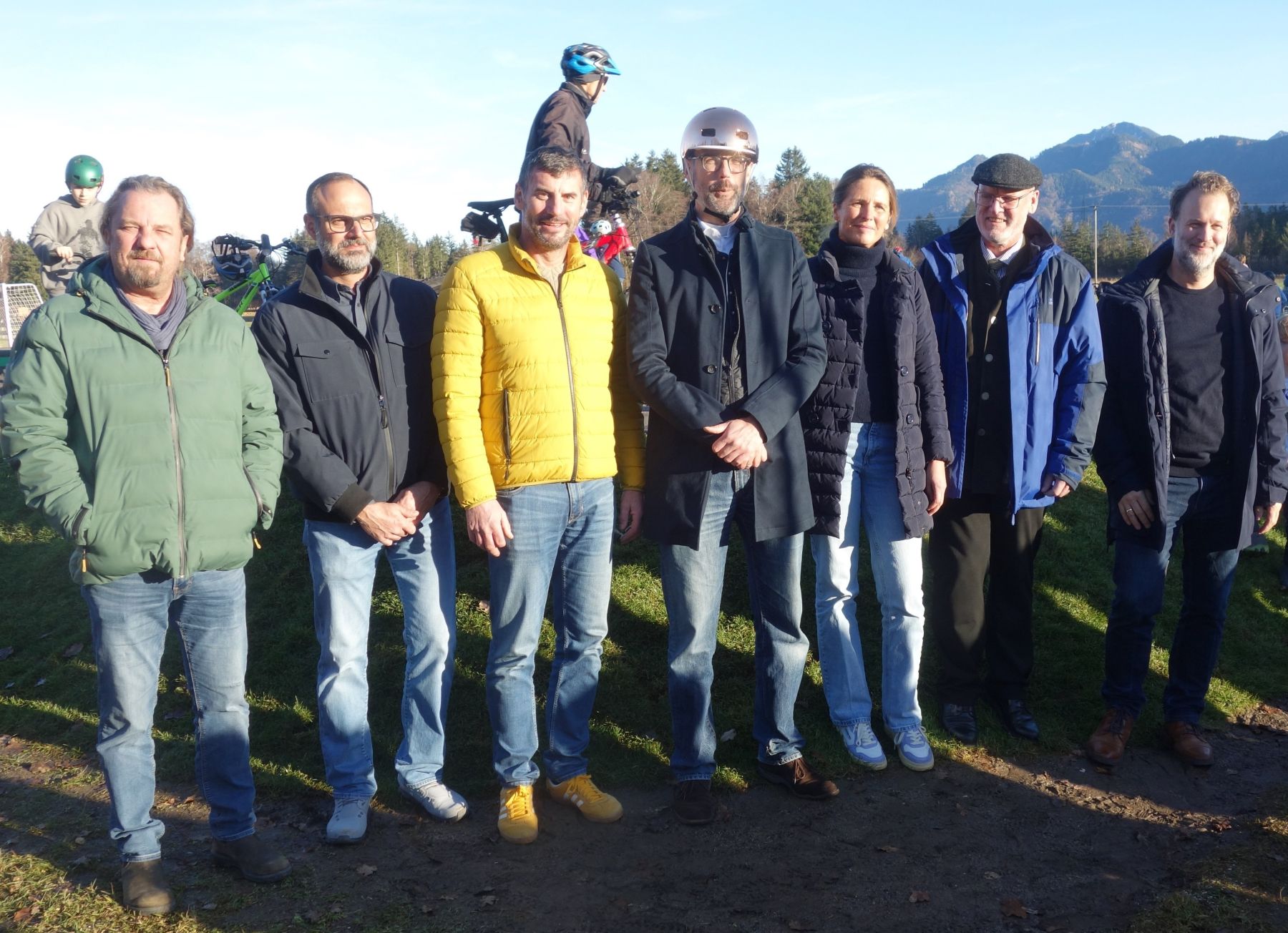 Freuten sich über die neue Pumptrackstrecke und die gelungene Einweihungsfeier (von links): Bernd Fleindl, Gemeindeverwaltung Grassau, Stefan Kellerer, Vorstand Tourismus- und Heimatverein Rottau, Dritter Bürgermeister Manfred Huber, Erster Bürgermeister Stefan Kattari, Edith Zettlitz Gemeindeverwaltung Grassau, Johann Kölbl, Leader-Koordinator am AELF Rosenheim, Christian Fechter, Geschäftsführer Leader-Region Chiemgauer Seenplatte. Foto: Josef Adersberger