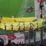 Erster gegen Zweiten in Soizburg, da musste ich hin, ich wollte wieder einmal Fussball live genießen. Eine halbe Stunde vor Anpfiff stehe ich vor der Red Bull Arena, wo an der Kasse noch genügend Eintrittskarten zu haben sind. Allerdings nicht mehr für einen Platz im Trockenen und da es gerade angefangen hat zu regnen, nehme ich eine Karte auf der Nordtribüne gleich neben der Red-Bull-Fankurve. Die Stimmung bei den Fans ist bestens, auch bei den Linzern, die in der Süd-Kurve Bengalos zünden.