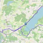 Vom Parkhaus nähe Klinikum fahren wir ca. 250 Meter ostwärts, um auf den Inndamm zu gelangen. Auf diesem fahren wir weitere 250 Meter und fahren dann links auf der schmalen Stahlbrücke über die Mangfall. Danach geht es wieder rechts weiter, bis wir nach ca. 500 Metern zur Innbrücke gelangen. Nach Überquerung der Brücke gelangen wir rechts in den Stephanskirchener Ortsteil Hofleiten. Wir bleiben für ca. 600 Meter auf dem Fuß-/Radweg auf dem Damm und verlassen diesen dann links in die Hofmühlstraße. Auf dieser bleibend unterqueren wir bald das Eisenbahngleis und fahren hinauf in die Ortsteile Eichbichl und Leiten. Inzwischen befinden wir uns auf der Mühlstraße, welche wir erst nach den letzten Häusern rechts in die Westerndorfer Straße verlassen. Nach Westerndorf stoßen wir wieder auf die Hauptverkehrsstra0e (Simsseestraße). Wir überqueren diese und fahren rechts auf dem Radweg der linken Straßenseite bis zur der Eisenbahnschranke nach einer kleinen Abfahrt. Erst hier verlassen wir wieder die Simsseestraße und fahren links der Bahngleise ca. 1,5 km bis nach Baierbach. Hier geht es rechts unter der Unterführung hindurch, gleich wieder links und hier zeigt uns ein Schild, dass wir uns jetzt auf dem offiziellen Simssee-Rundweg befinden. Für die komplette Umrundung müssen wir ab jetzt nur noch den Schildern folgen, welche durchgehend den richtigen Weg weisen. Auf der Nordwestseite des Sees, die wir jetzt vor uns haben, befinden mir uns meist auf Autostraßen, müssen also dort, wo es keinen separaten Radweg gibt, auf den Autoverkehr achten, wenngleich es sich auch nur um verkehrsarme Straßen handelt. Dies ändert sich erst in der zweiten Hälfte der Tour.