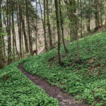 - Trail: Vorsicht – stellenweise Absturzgefahr! Nach 1,3 km biegen wir rechts in Forststraße ein.