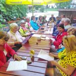Der diesjährige Radlausflug der Priener Liedertafel hatte zunächst Stephanskirchen bei Hemhof zum Ziel. Über Rimsting-Bahnhof und Hemhof radelten 15 Sängerinnen und Sänger dorthin und sangen in der Kirche mehrere Lieder, danach hielt Lothar Rechberger einen kurzen Vortrag über die Geschichte des Ortes und der Kirche. Weiter ging es über Gachensolden nach Bachham zum Gasthof Weißbräu, wo Mittagspause gemacht wurde. Hier warteten noch mehrere Sängerinnen und Sänger, die mit dem Auto gekommen waren. Nach dem Essen wurde dann noch fleißig gesungen, sehr zur Freude der anderen Gäste. Die Sonne zeigte sich jetzt auch und so wurde es noch einer schöner Sommertag. Zurück ging es dann über Eggstätt und Unterkitzing nach Schafwaschen, wo am Strandkiosk einige noch zum Abschluss eine Kaffeepause einlegten.