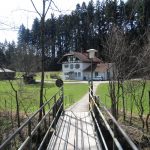 Ich tüftle daher eine Tour zum Simssee aus. Zu Dritt starten wir in Prien. Wir radeln zum Eichental, überqueren bei den Tennisplätzen die Prien, über die wir in der Au noch zweimal müssen, bevor es hinauf zur Grablmühle geht. Dann weiter über Bachham und Atzing nach Stetten. Jetzt heisst es aufpassen, denn die Straße hinunter zur Thalkirchner Achen ist steil und ungeteert, man kann leicht ins Rutschen kommen. Es geht aber alles gut.