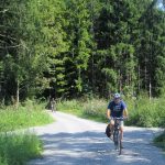 Nachdem wir uns gestärkt und frische Kräfte getankt haben gehts weiter über Ecking und den Toni-Rietz-Weg und Seeblick-Weg bis zum Badeplatz Simssee. In Simssee biegen wir auf die Autostraße ein, auf der wir der Bahnlinie entlang bis zum Restaurant mit Badeplatz in Krottenmühl radeln. Die Straße ist nur teilweise geteert und wir werden von den vorbeikommenden Autos manchmal ganz schön eingestaubt. Daher gönnen wir uns noch einmal eine Pause und ein erfrischendes Bad im Simssee, bevor wir uns auf die letzte Etappe machen.