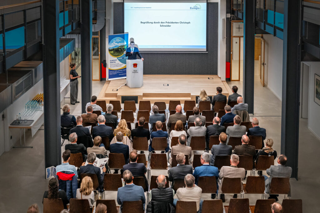 Blick in den Innenhof des neuen Rathauses bei der Euregio-Jahreshauptversammlung.