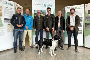 Kürzlich eröffnete Dr. Joachim Hamberger (3.v.r.), Leiter im Bayerischen Amt für Waldgenetik, die Ausstellung im Beisein von Berchtesgadens Bürgermeister Franz Rasp, Ulrich Brendel, stellvertretender Nationalparkleiter, Landrat Bernhard Kern (v.l.) sowie Tassilo Heller, stellvertretender Leiter im Amt für Ernährung, Landwirtschaft und Forsten in Traunstein sowie Dr. Daniel Müller, Forstbetriebsleiter in Berchtesgaden (v.r.).