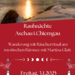 Dabei spielen die Rauhnächte eine zentrale Rolle im Jahreskreis. Die erfahrene Kräuterfrau und Brauchtumsexpertin Martina Glatt führt Sie durch diese traditionsreiche Welt und gibt spannende Einblicke in die Rituale und Überlieferungen dieser Nächte. Ein wichtiger Bestandteil der Rauhnächte war das Räuchern, das die Zeit der Reinigung und Besinnung symbolisierte. Bei einem gemeinsamen Räucherritual erfahren Sie, mit welchen Kräutern und Harzen unsere Ahnen arbeiten, welche Bedeutung sie diesen zuschrieben und wie auch heute noch altes Wissen in die Gegenwart integriert werden kann. Doch die Rauhnächte sind nicht nur eine Zeit des Räucherns und Loslassens. Es war auch die Zeit des „Losens“, des Orakelns und der Besinnung auf die innere Stimme. Lassen Sie sich überraschen, welche alten Bräuche und symbolischen Handlungen diese Tage einst prägten – und wie sie uns bis heute berühren können. Treffpunkt: Moorbad Aschau – Keine Anmeldung erforderlich. Begeben Sie sich auf eine Reise in die Vergangenheit und spüren Sie die besondere Energie dieser magischen Zeit am sagenumwobenen Bärnsee. Lassen Sie sich von den uralten Traditionen inspirieren und erleben Sie die mystische Verbindung von Natur, Ritualen und Besinnung hautnah.