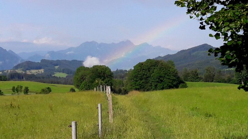 Ein bisschen Regenbogenfreuden brachte zum Wochenende-Beginn das Wetter am Samerberg. Der Regenbogen tauchte nach einem starken Regen über dem Ortsteil Steinkirchen auf, der ganze Bogen war leider nicht zu sehen, da ein Teil hinter den Wolken verschwand.