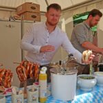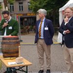 Professor Beckhove übernahm dann auch den Fassanstich. Mit gekonnten zwei Schlägen hieß es „O’zapft is“. Der edle Gestensaft wurde dieses Jahr von den Regensburger Brauereien Kneitinger und Bischofshof (Weltenburger) angeliefert. Der traditionelle Weißwurstfrühschoppen am ersten Festtag war somit eröffnet. Dazu gab es weitere regionale Spezialitäten, wie Bratwürste aus der historischen Regensburger Wurstküche, Knackersemmeln, Obatzda, Brezen und einiges mehr. Mit zünftiger bayerischer Blasmusik von den Labertaler Musikanten war dann eine stimmungsvolle Biergartenatmosphäre gegeben.