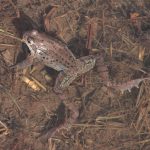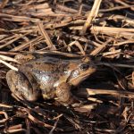 Der Grasfrosch (Rana temporaria) kommt in ganz Bayern vor, er hält sich besonders gerne in Biberrevieren auf. Sein Laichteppich ist oft quadratmetergroß.
