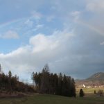 Auf dem Heimweg sorgten die ersten Blüten der Sumpfdotterblumen für weiteren Augenschmaus und die Wetterkapriolen für einen schönen Regenbogen über Grainbach und den Filzen.