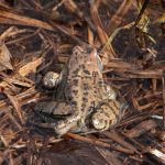 In den vergangenen Tagen waren an vielen Stellen mit ausreichend Wasser unzählige Grasfrösche bei ihrem bunten Treiben rund um die Paarung sowie beim Ablaichen zu beobachten und ließen sich auch durch die teils heftigen Sturmböen am Sonntagnachmittag nicht beirren. Dass es sich tatsächlich durchgängig um Grasfrösche handelt, trotz der großen Bandbreite an Farben und Mustern der Tiere, bestätigt der Steckbrief über den Grasfrosch auf der Webseite des BUND Naturschutz (https://www.bund-naturschutz.de/tiere-in-bayern/amphibien/froschlurche/grasfrosch.html)