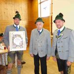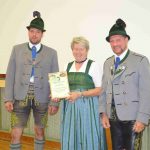 Zwei besondere Ehrungen konnten die Vorstände Martin Schober und Maxi Maurer vornehmen. Eine Nadel mit Urkunde für 50 Jahre Vereinstreue bekam Cilly Schweinsteiger und gar 70 Jahre gehört Sepp Fembacher dem 122 Jahre alten Rossholzener Trachtenverein an. Zu den Gratulanten gehörte auch Zweiter Bürgermeister Christoph Heibler, er bezeichnete die gute Nachwuchs- und Aktiven-Situation als Motor und Zukunft des Vereins und er zeigte sich sehr überrascht, wie aktiv der Verein bislang über die Corona-Zeit gekommen ist. „Vor Corona wurden die Feste immer größer, jetzt, wo sie weniger und kleiner geworden sind, sind sie uns auch bewusster geworden, was sogar ein Vorteil ist“ – so der Zweite Bürgermeister. Diakon Günter Schmitzberger ließ in einem Grußwort mitteilen, dass es für Kirche und Gesellschaft auf dem Samerberg und in Roßholzen gut ist, dass es den „Baschtler“ Trachtenverein gibt.