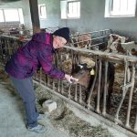 Ein besonderes Augenmerk wird auf dem Betrieb Bachmaier auf die Kälber gelegt. Kürzlich ist ein Mädchen auf die Welt gekommen, das zweite Kalb der vierjährigen Kuh Regine. Es erfreut sich bester Gesundheit und ist sehr durstig, wovon sich Kreisrätin Sosa Balderanou persönlich überzeugen konnte. Die Tierbeobachtung ist sehr wichtig, auch anhand von Kot oder Körpertemperatur kann ermittelt werden, ob es den jungen Rindern gut geht. Eine Kuh kalbt i.d.R. einmal jährlich. Ohne Kalb würde eine Kuh auch keine Milch geben. Es kommt auch mal zu Zwillings- oder Mehrlingsgeburten, am liebsten ist es dem Tierhalter jedoch, wenn ein gesundes Kalb zur Welt kommt. Im Wellnessbereich, wie ihn Bachmaier nennt, dem speziellen Abkalbebereich, werden die zur Abkalbung anstehenden Tiere gehalten. In dieser Kleingruppe kann der Bauer genau erkennen, welche Tiere unruhig sind und bald ihr Kalb bekommen, um ihnen seine besondere Aufmerksamkeit zu schenken. In der Gruppe der Jungkühe läuft immer ein Jungbulle mit, die Tiere nach der ersten Kalbung werden durch den Besamungstechniker mit Sperma von der Besamungsstation befruchtet.