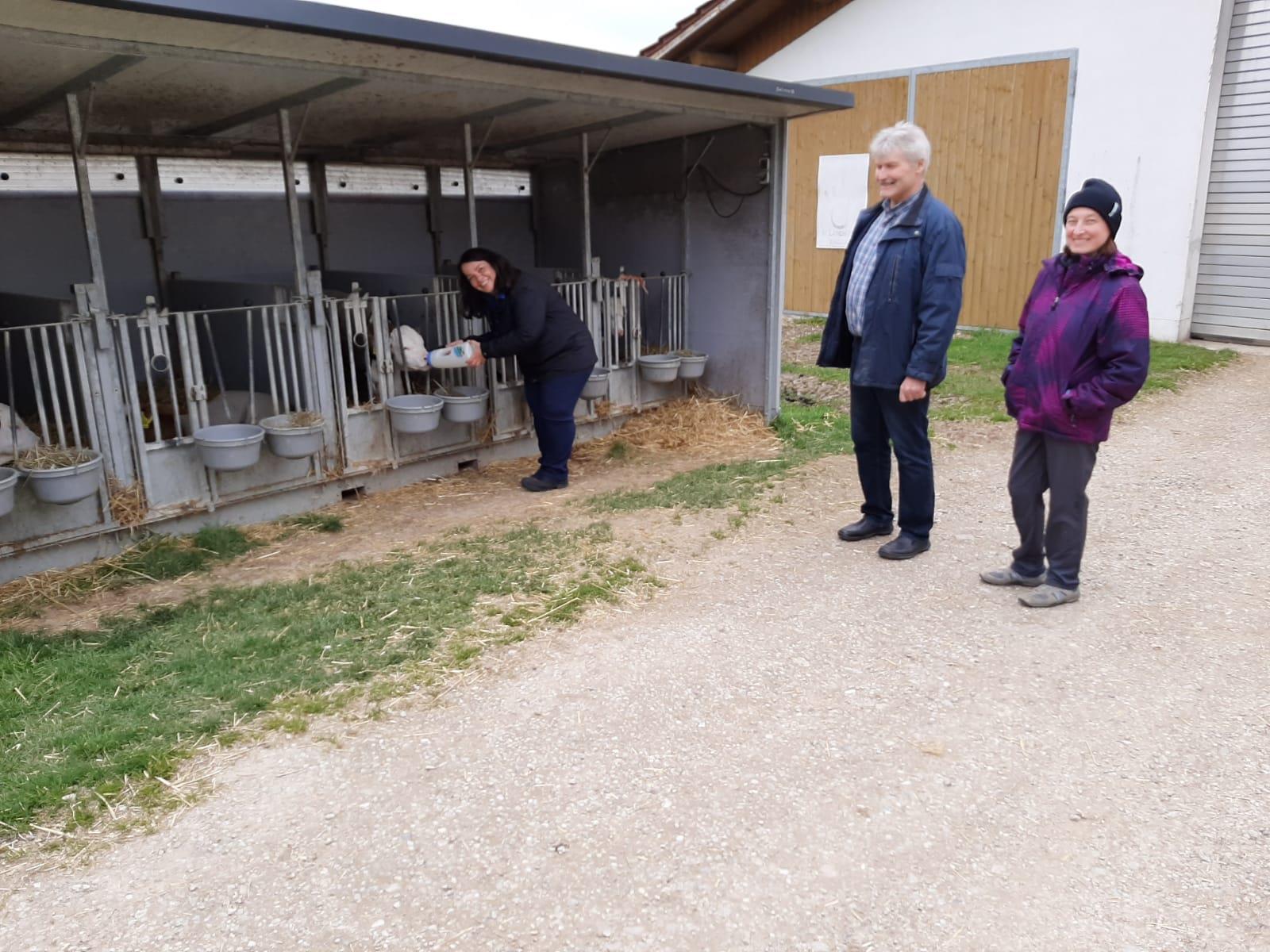 Sosa Balderanou füttert Kalb, Bartholomäus und Marliese Bachmaier (Bildrechte: Michael Hamburger)