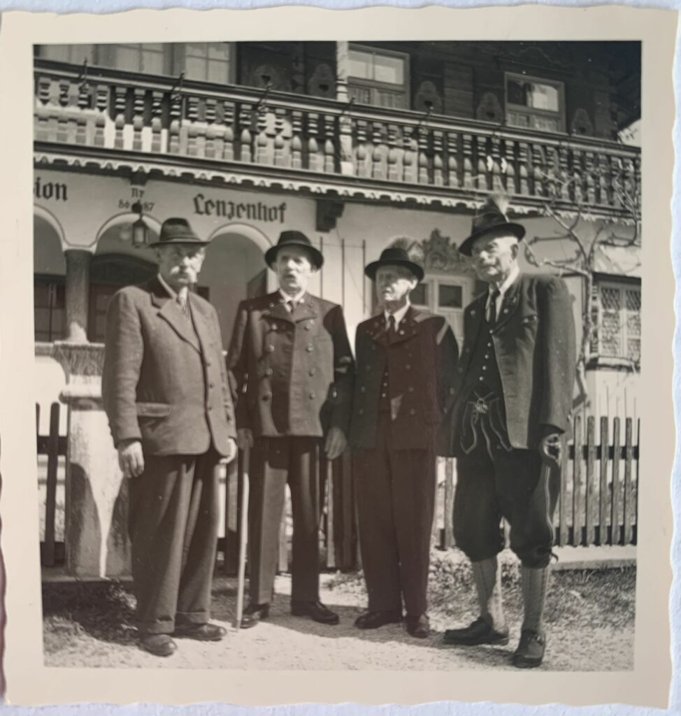 v. l. n. r.: Gründungsmitglieder: Josef Mühlberger, Rottmeister/Fritz Heigenhauser, Kaufmann/Josef Fischer, Obersäger/ Josef Lehrberger, Sägewerksbesitzer